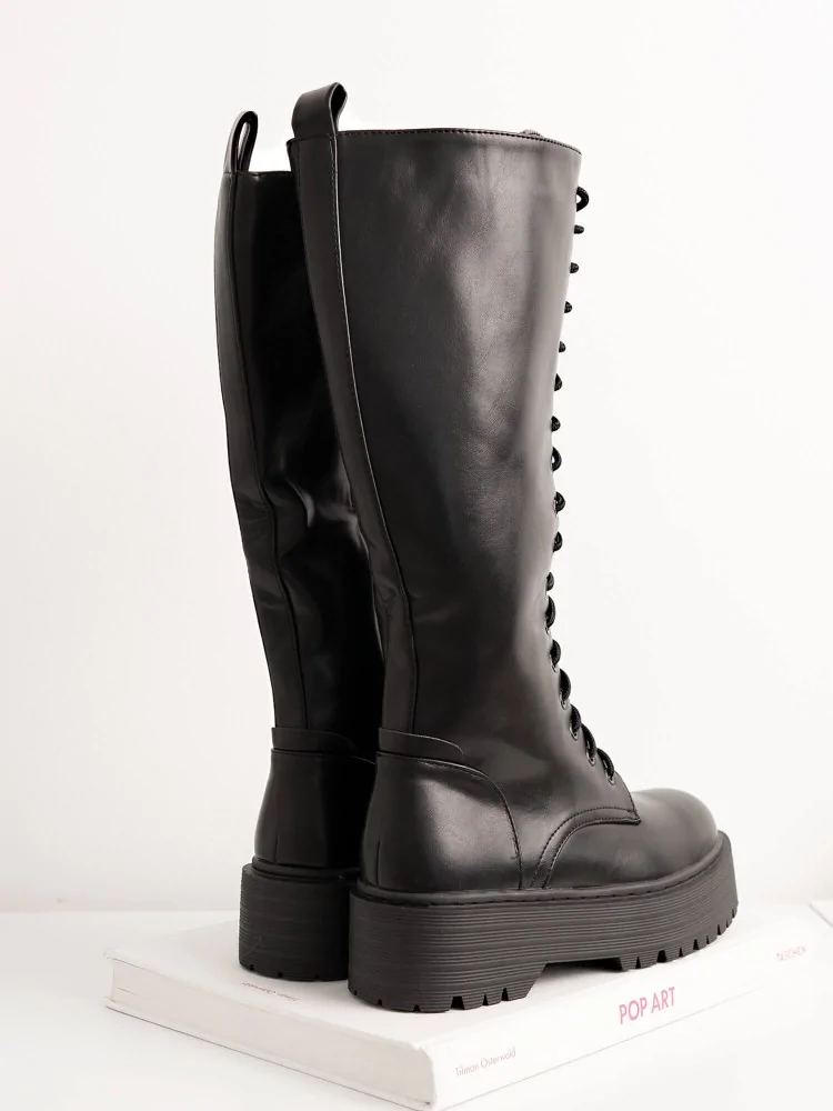 μαύρη μπότα με τρακτερωτό πάτο