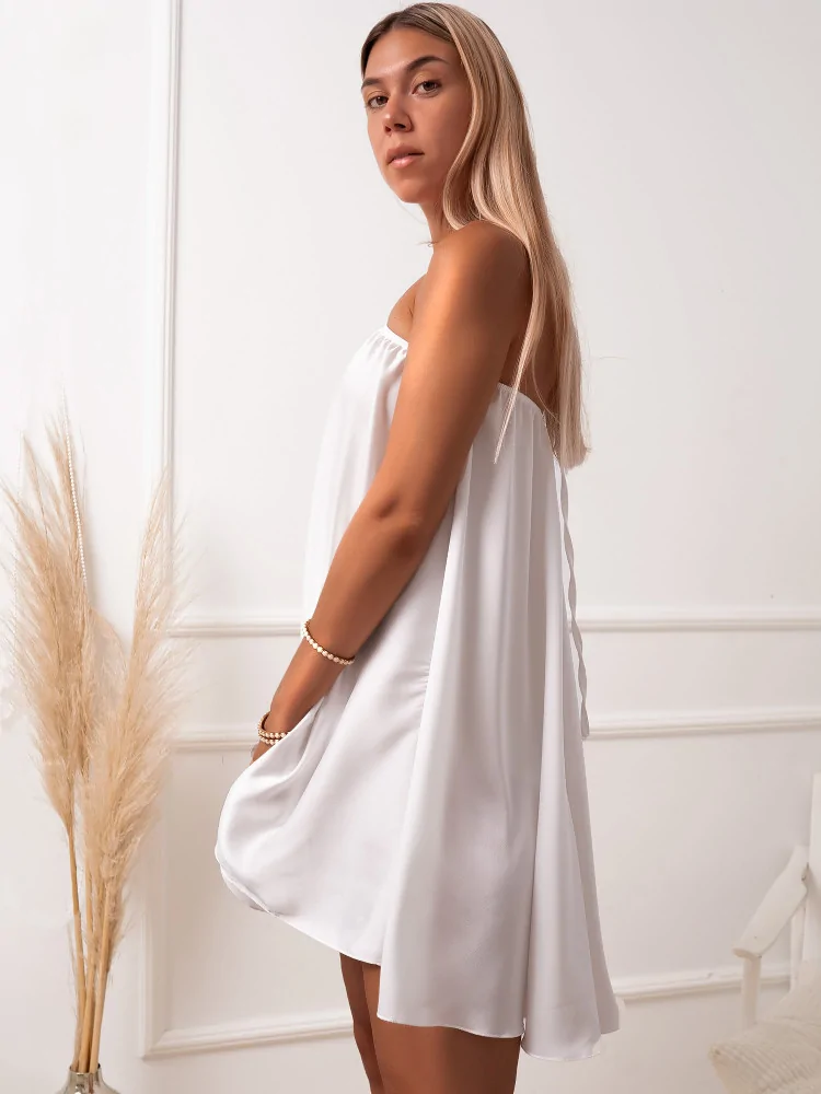 λευκό σατέν μίνι φόρεμα που δένει πίσω απον λαιμό