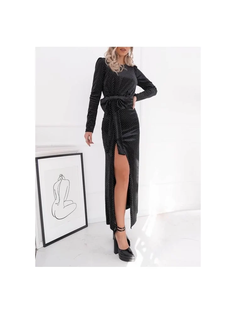 βελούδο μαύρο φόρεμα με σκίσιμο