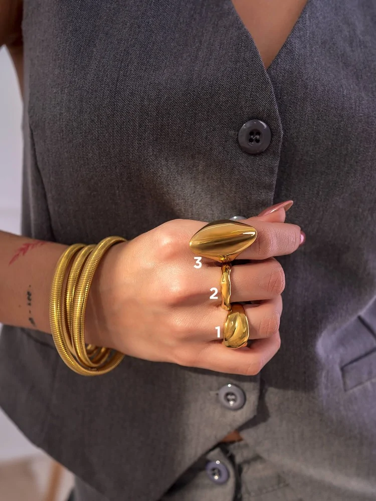 Όσον αφορά τα σχέδια, το τι δαχτυλίδι θα διαλέξεις εξαρτάται από το προσωπικό σου στυλ και από το τι θες να πετύχεις. Αν, για παράδειγμα, θες να κάνεις ένα fashion statement με layering, τότε θα προτιμήσεις πολλά αλλά διακριτικά δαχτυλίδια σε μίνιμαλ ύφος για να εξισορροπήσουν το αποτέλεσμα. Αν πάλι θες να τραβήξεις την προσοχή σε ένα συγκεκριμένο κομμάτι, τότε προτίμησε ένα εντυπωσιακό δαχτυλίδι με στρας, σε μεγάλο μέγεθος ή με έντονα γεωμετρικά σχήματα.