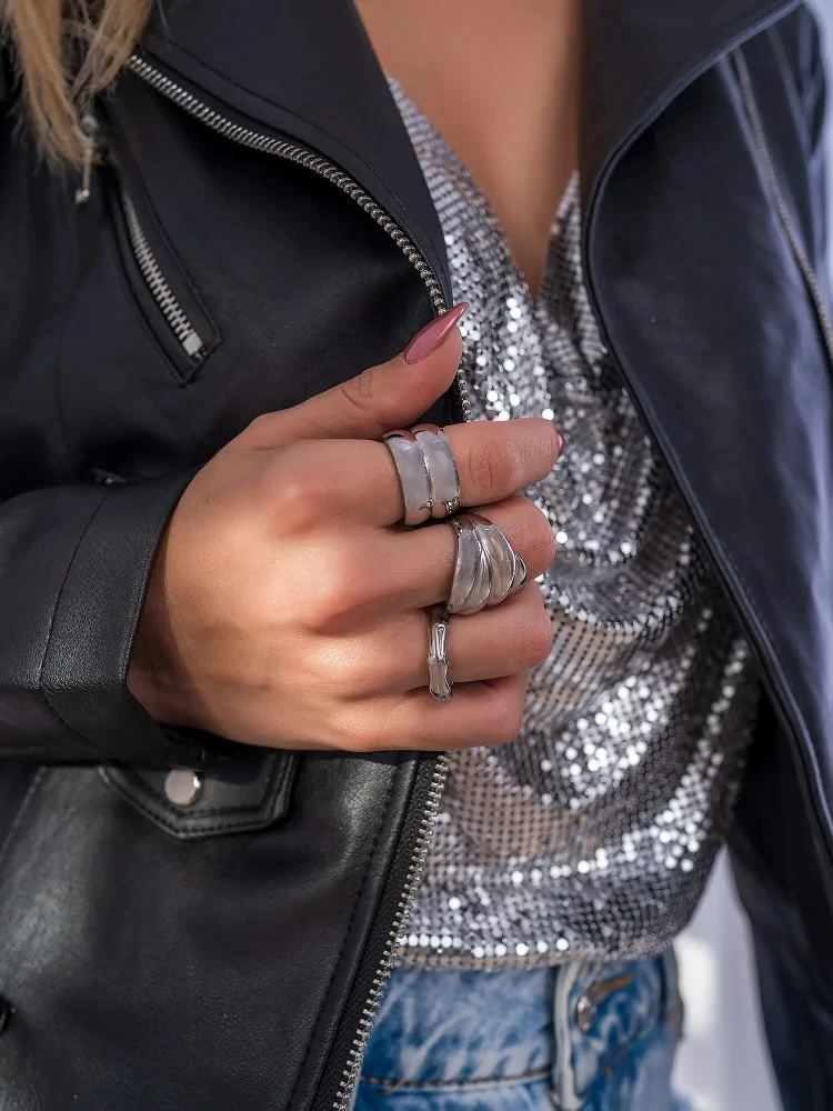 δαχτυλίδια σε ασημί χρώμα σε τρια σχέδια