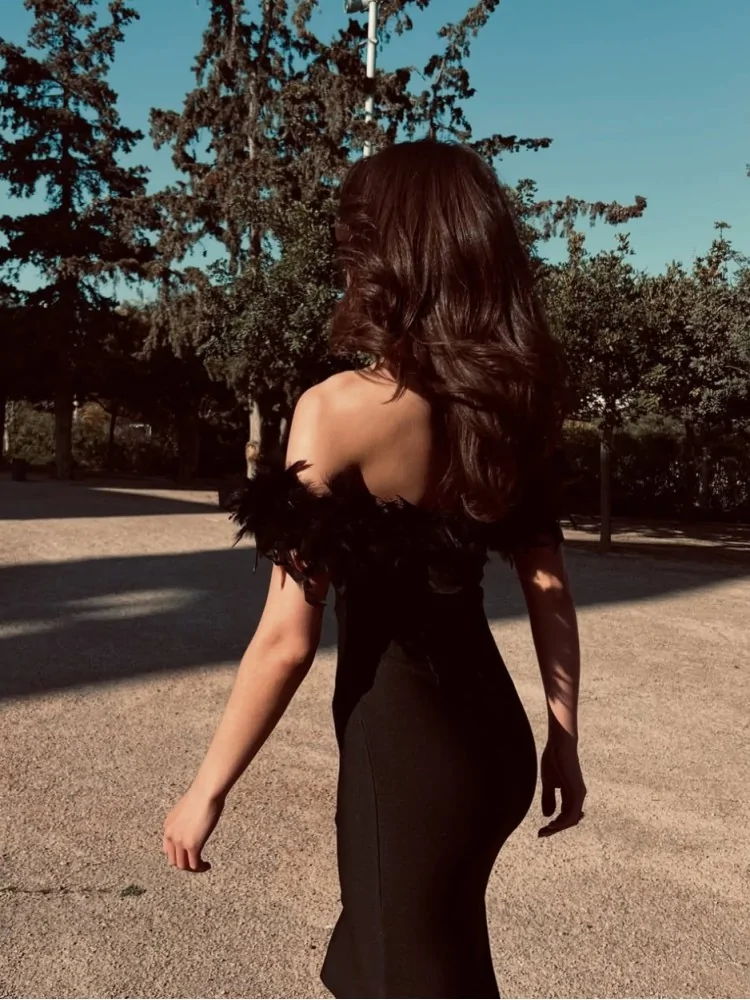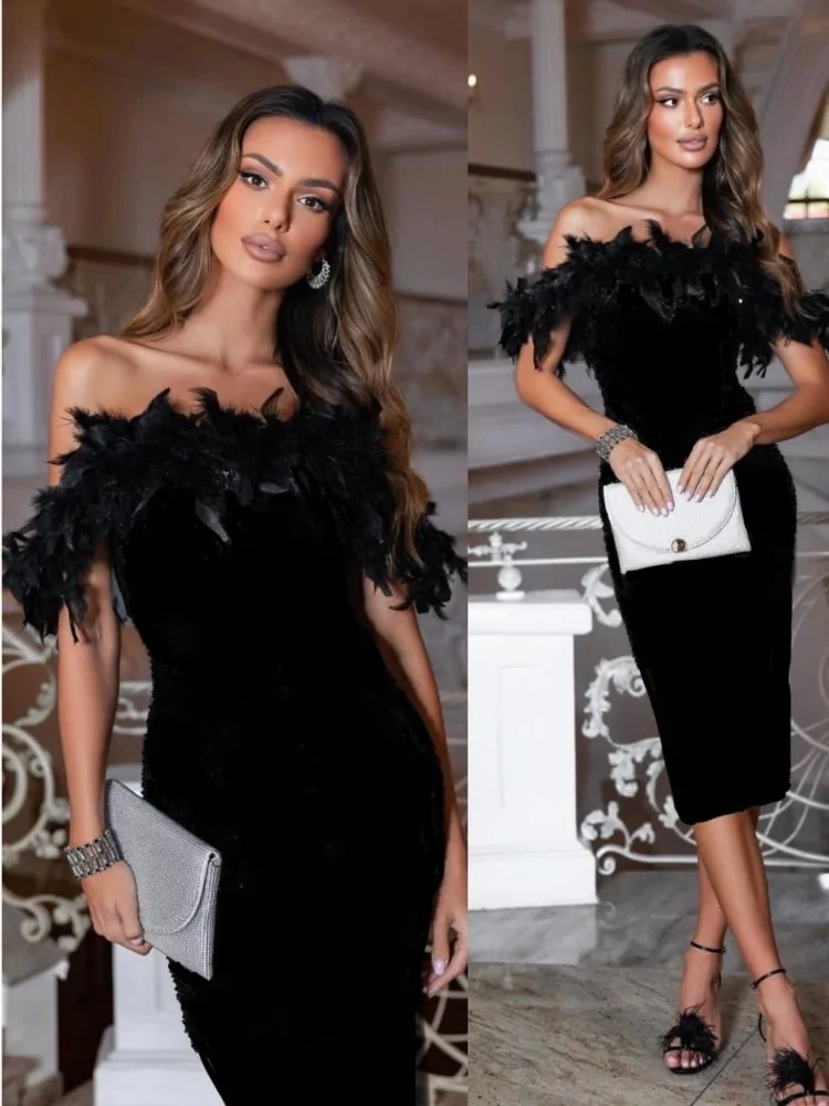 μαύρο φόρεμα με πούπουλα