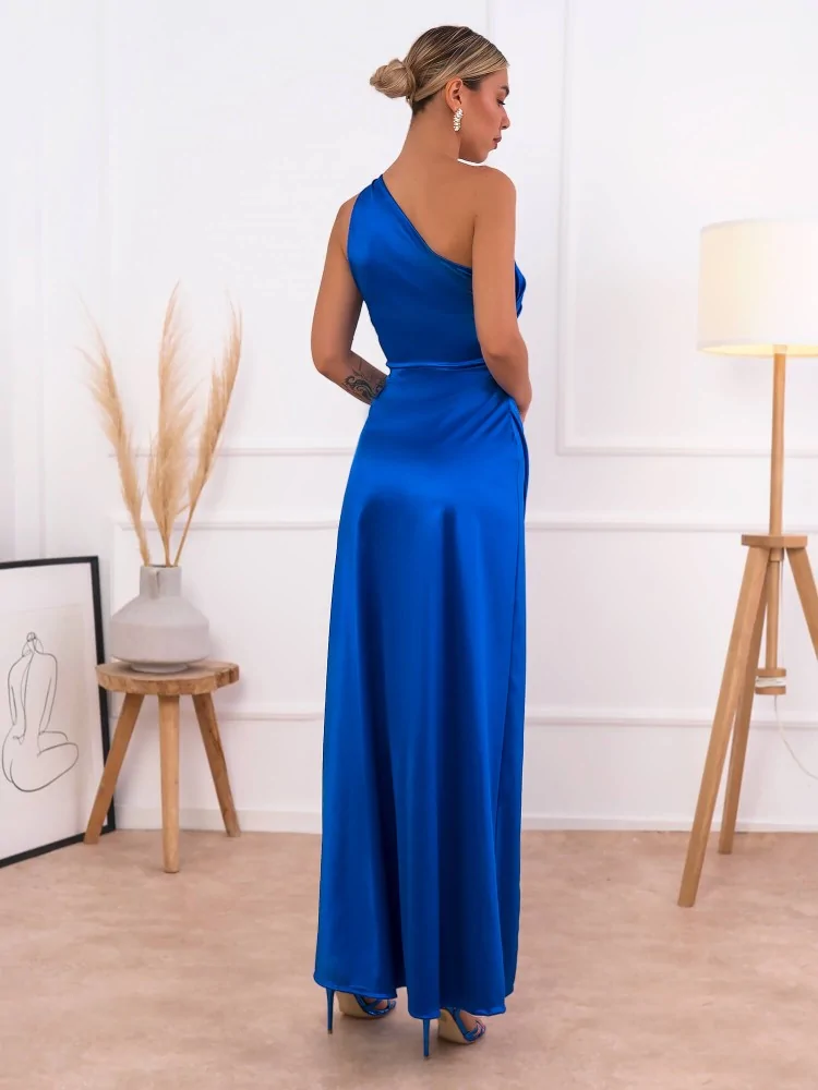Μακρύ φόρεμα με έναν ώμο και σκίσιμο στο πλάι
