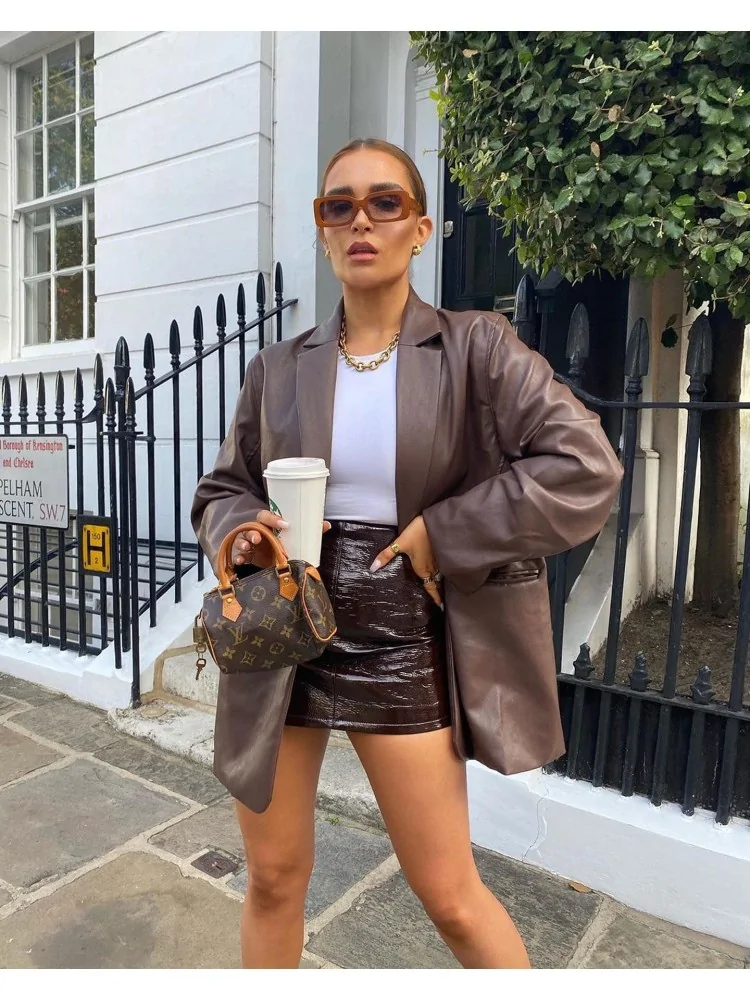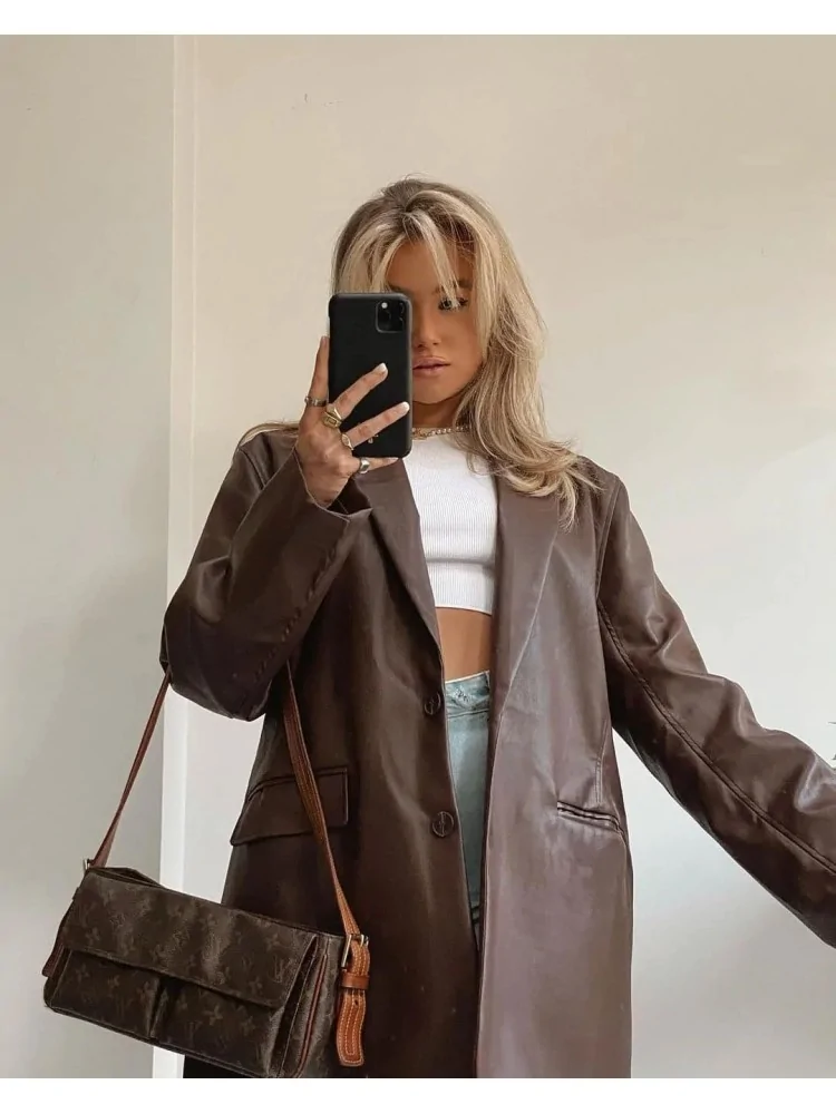 καφέ σακάκι δερματίνη σε boyfriend γραμμή