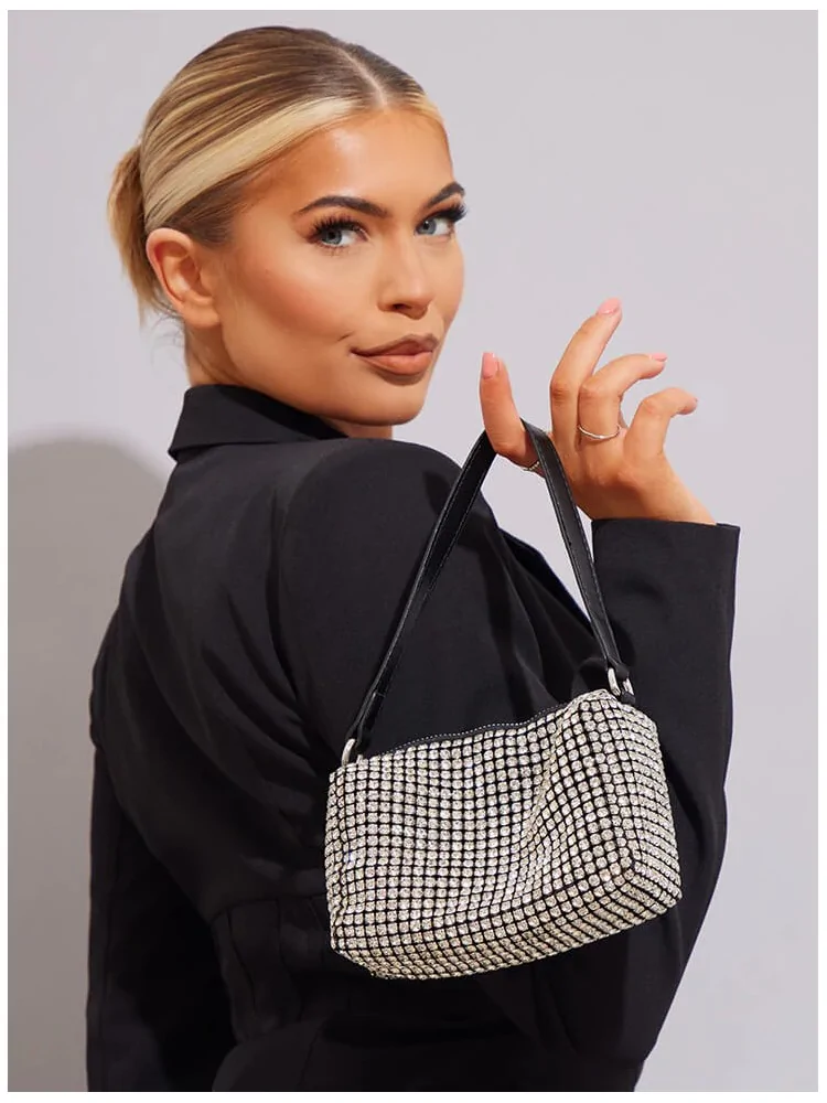 Μίνι τσαντάκι με strass και μαύρο λουράκι