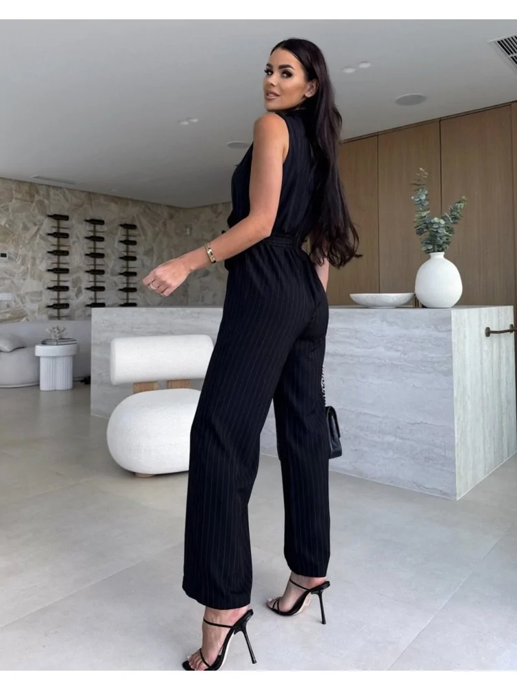 ολόσωμη φόρμα αμάνικη με λεπτή ρίγα και ζωνάκι στην μέση
