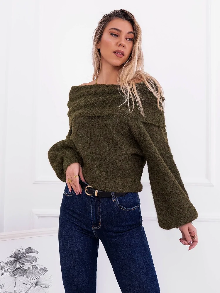 Μπλέ πλεκτή μπλούζα ζιβάγκο