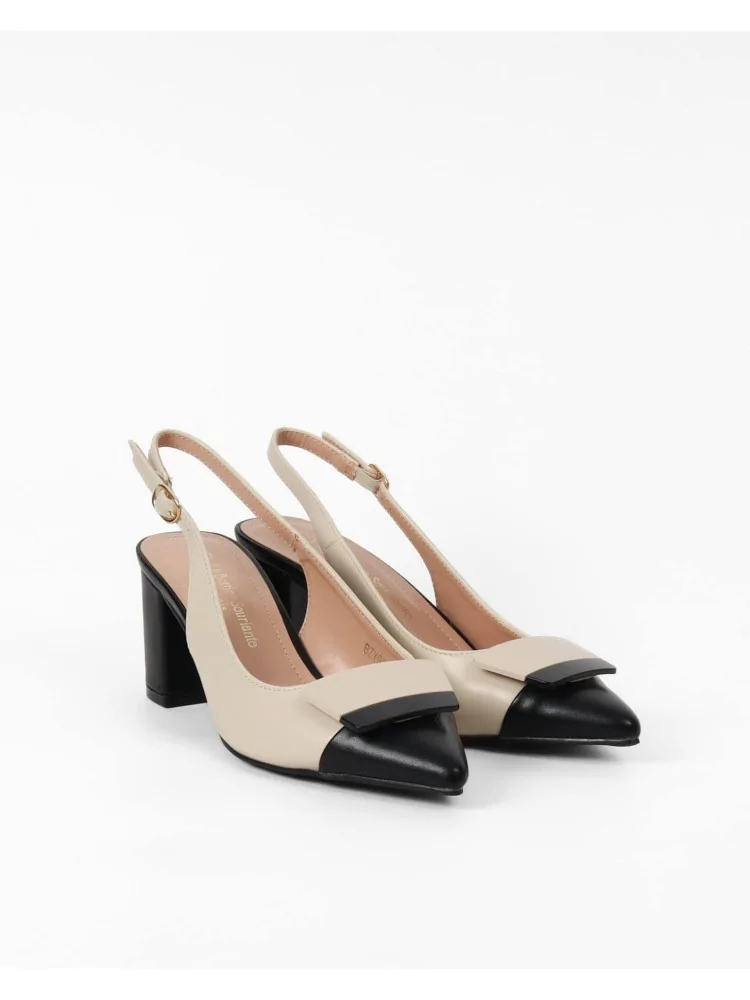 Δίχρωμες μυτερές εξώφτερνες γόβες με τετράγωνο τακούνι 8 εκατοστά