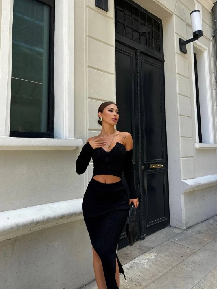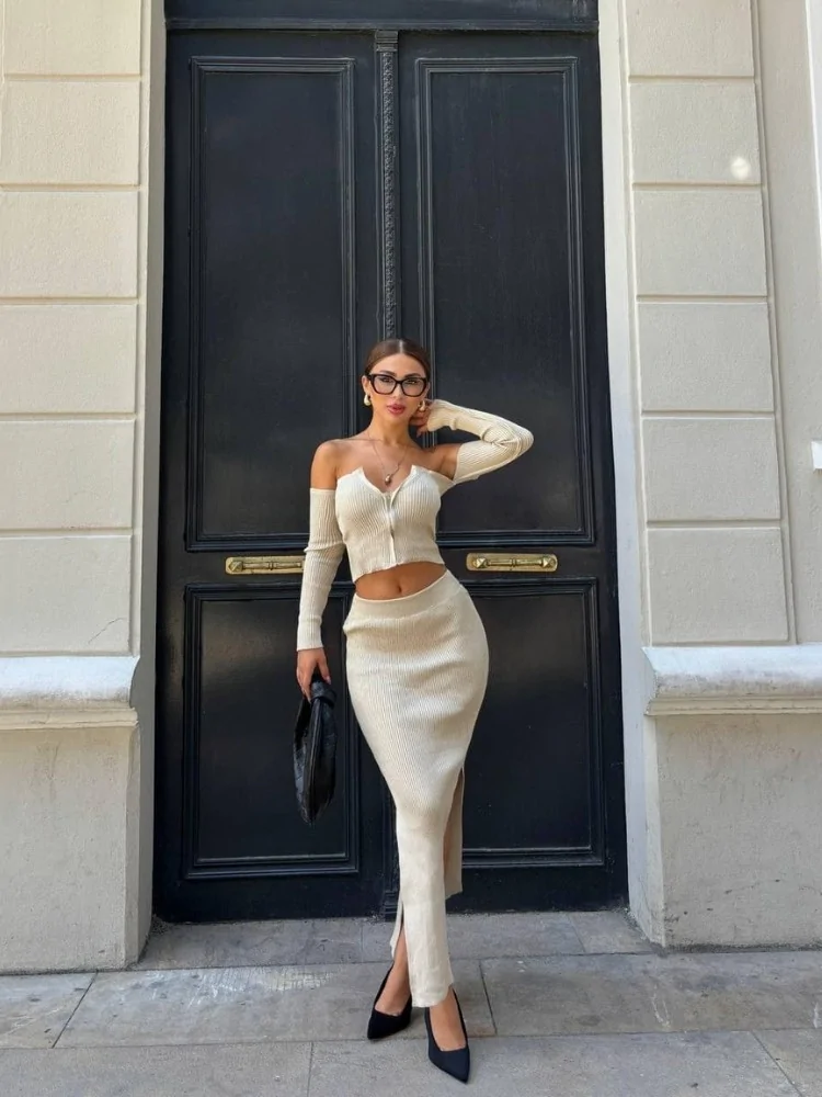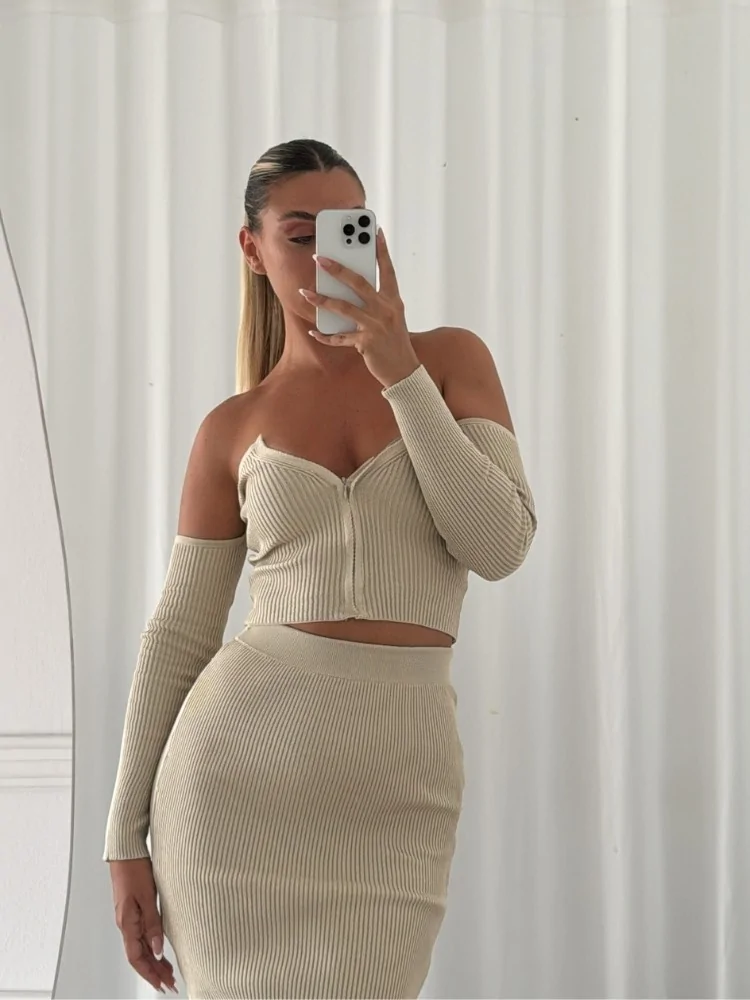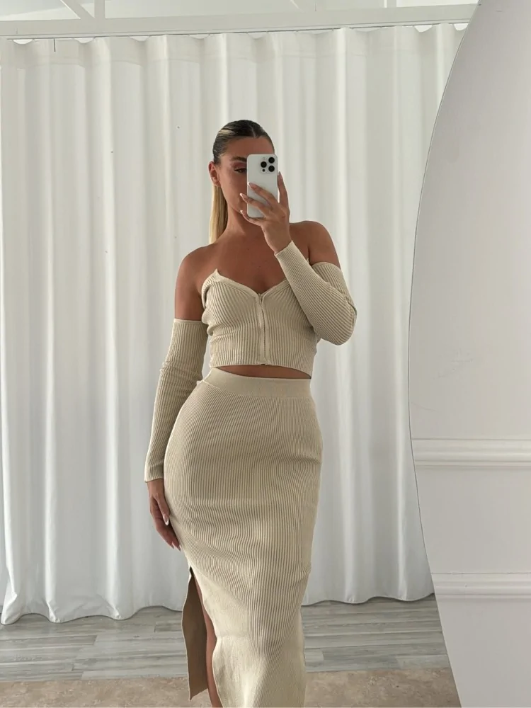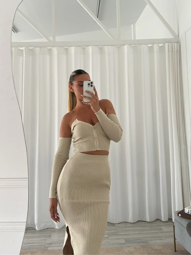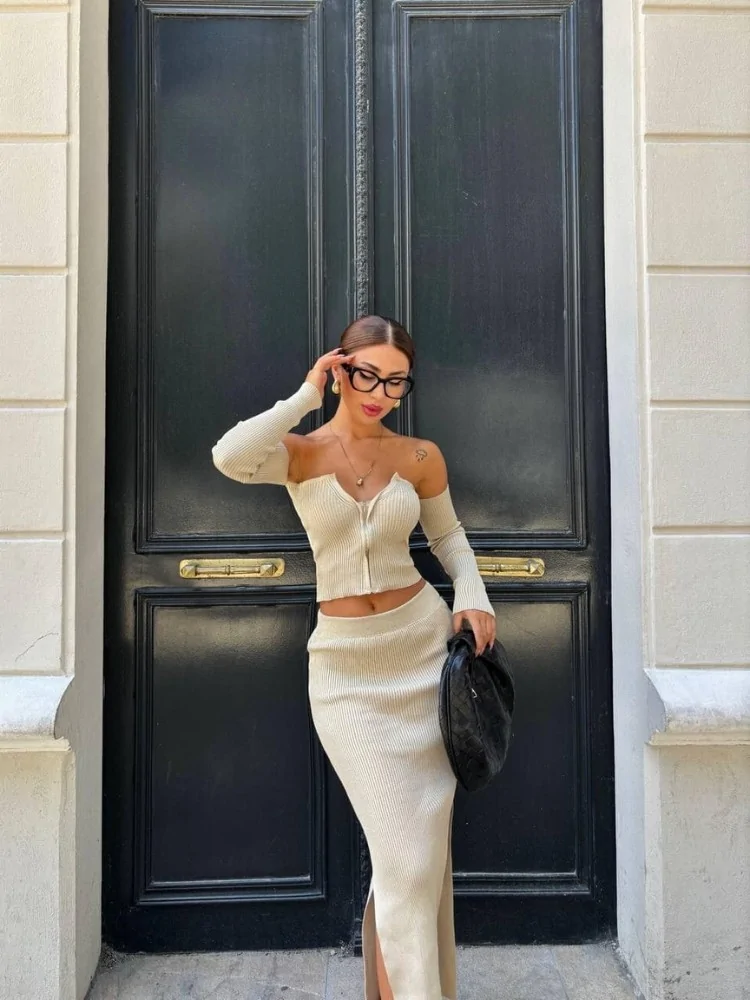 πλεκτό σετ από φούστα και τοπ