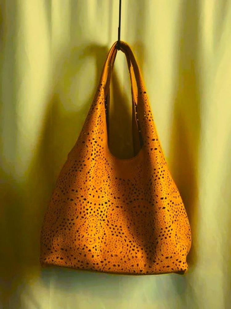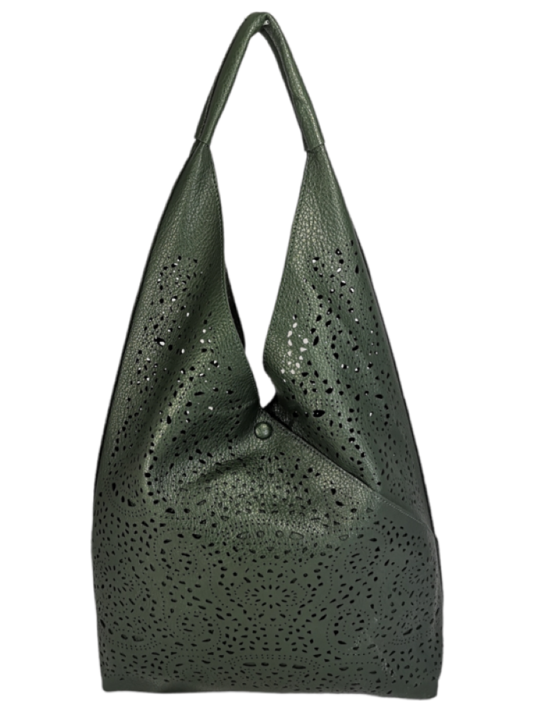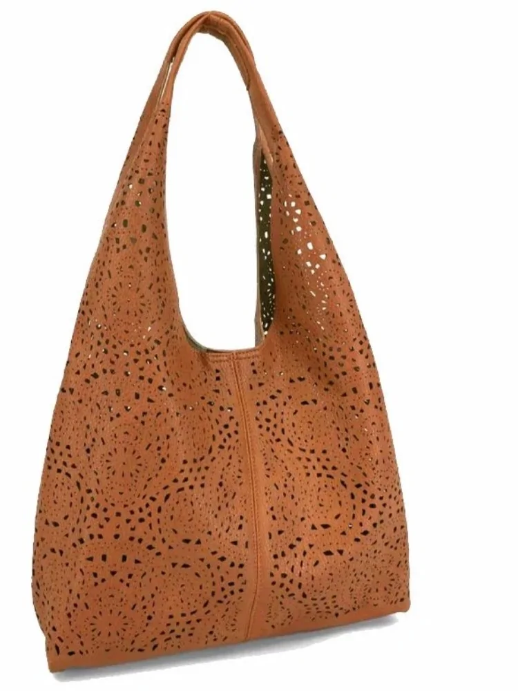 Αυτή η κομψή τσάντα με τις διάτρητες λεπτομέρειες προσφέρει στυλ και λειτουργικότητα, ιδανική για καθημερινή χρήση.