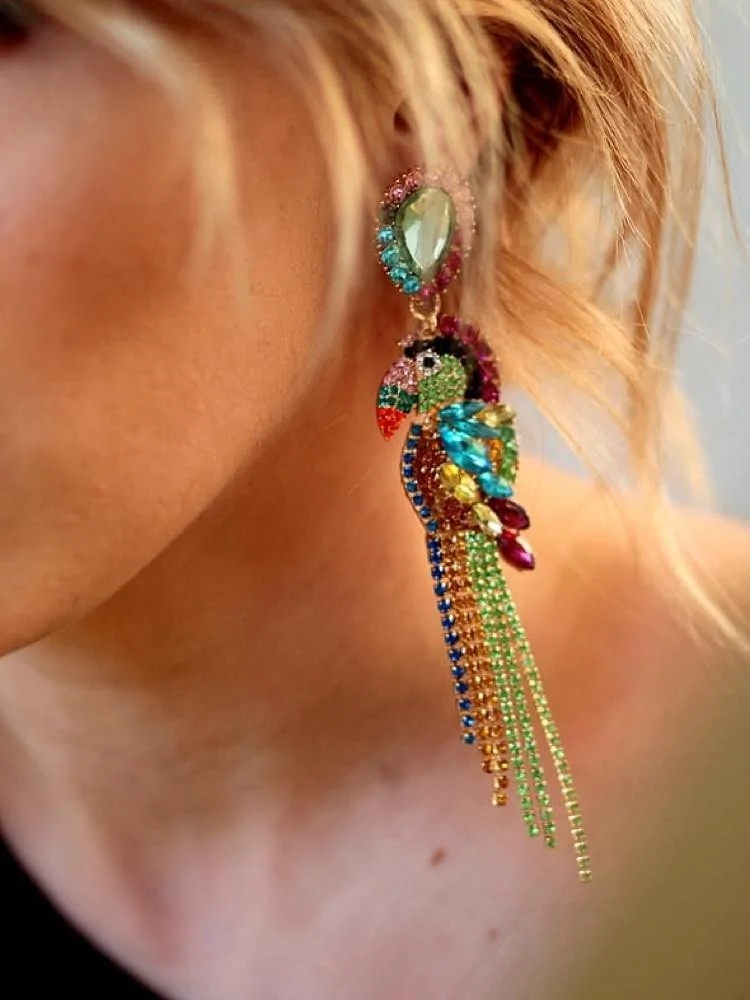 σκουλαρίκια με στρας χρωματιστά με σχέδιο παπαγάλος