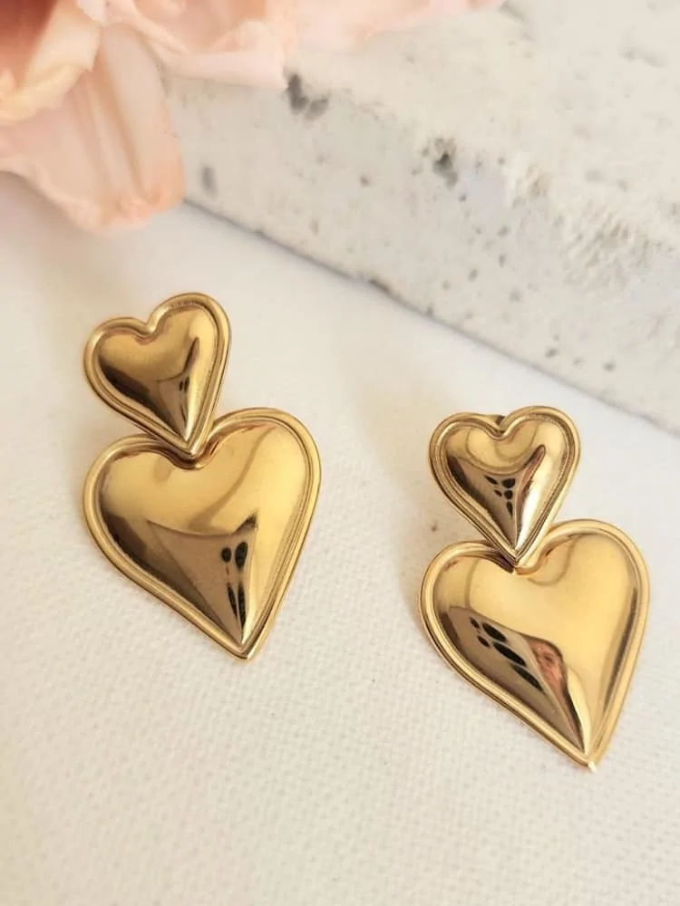 Μικρά χρυσά κρικάκια με στρασενια καρδούλα