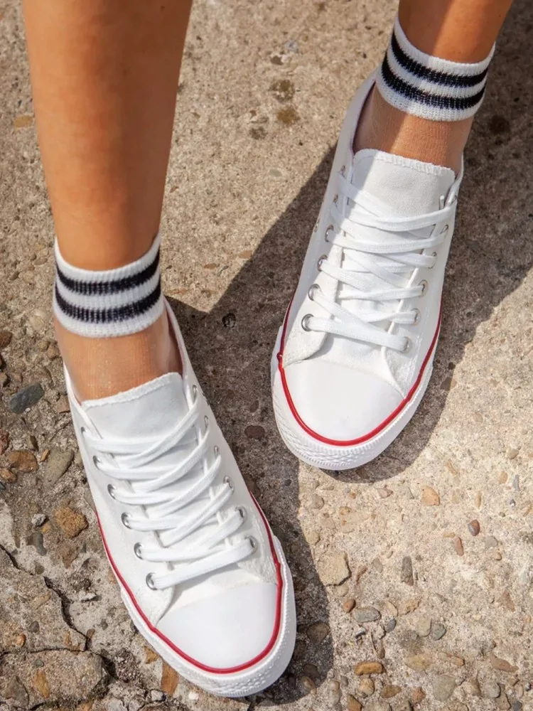 Πέρα από τα chunky sneakers που επέστρεψαν από τα 90’s, ειδική θέση στην καρδιά μας έχουν και τα plain white sneakers σε κανονική φλατ γραμμή. Μπορείς να τα συνδυάσεις με τα πάντα και το εννοούμε! Είτε φοράς τζιν, είτε φόρεμα, είτε κολάν, τα παπούτσια αυτά θα σε σώσουν! Πρόκειται για ένα παπούτσι που φοριέται all season και αποτελεί σταθερή αξία. Βάλε το σορτσάκι σου, φόρα τα sneakers σου και ξεκίνα την περιπέτειά σου!