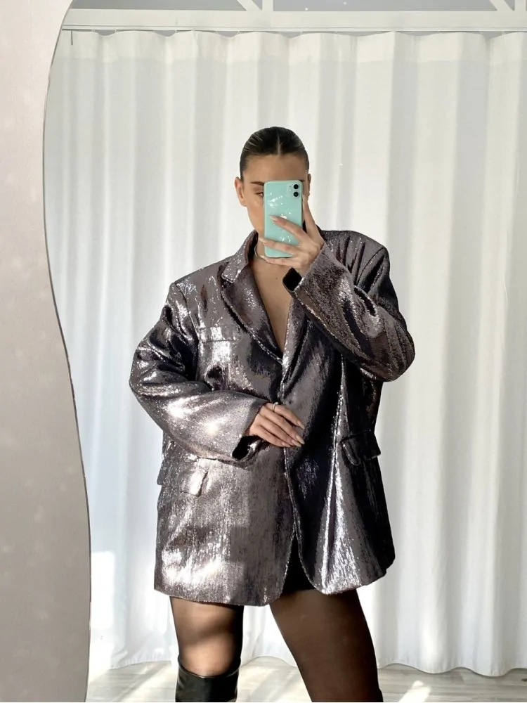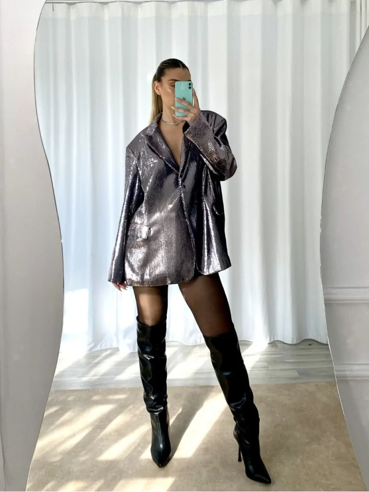 GREY SILVER BOXY BLAZER - EMELIA