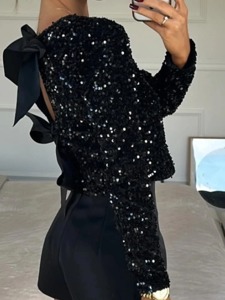 VELVET BLOUSE WITH SEQUINS - ANTILO
