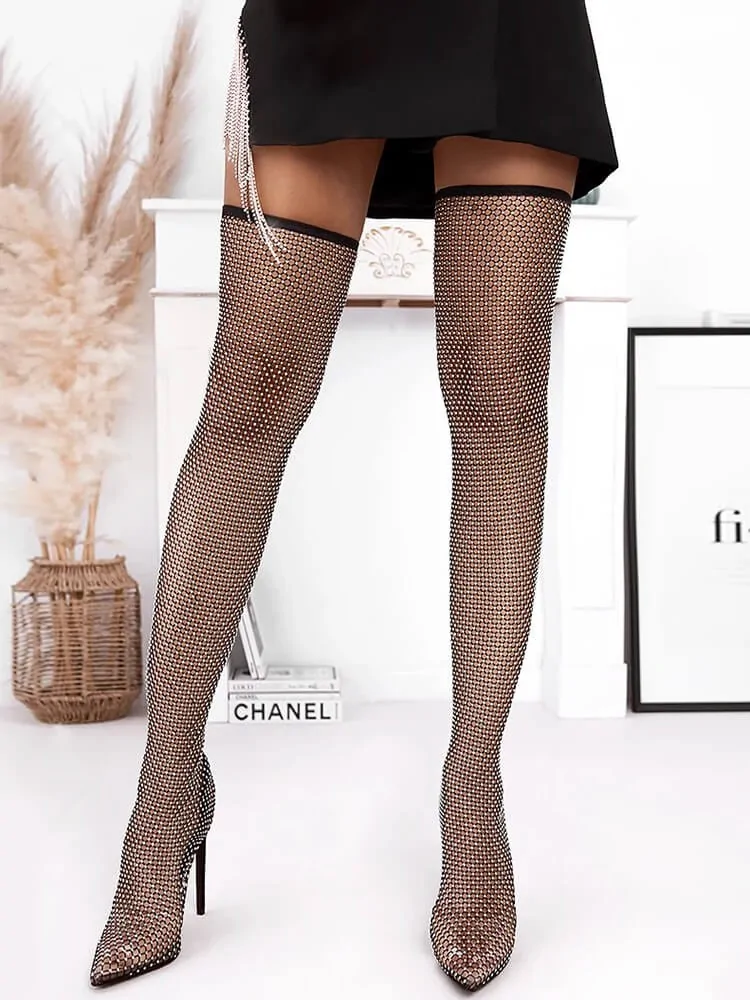 OMG BLACK OVER KNEE STRASS BOOTS
