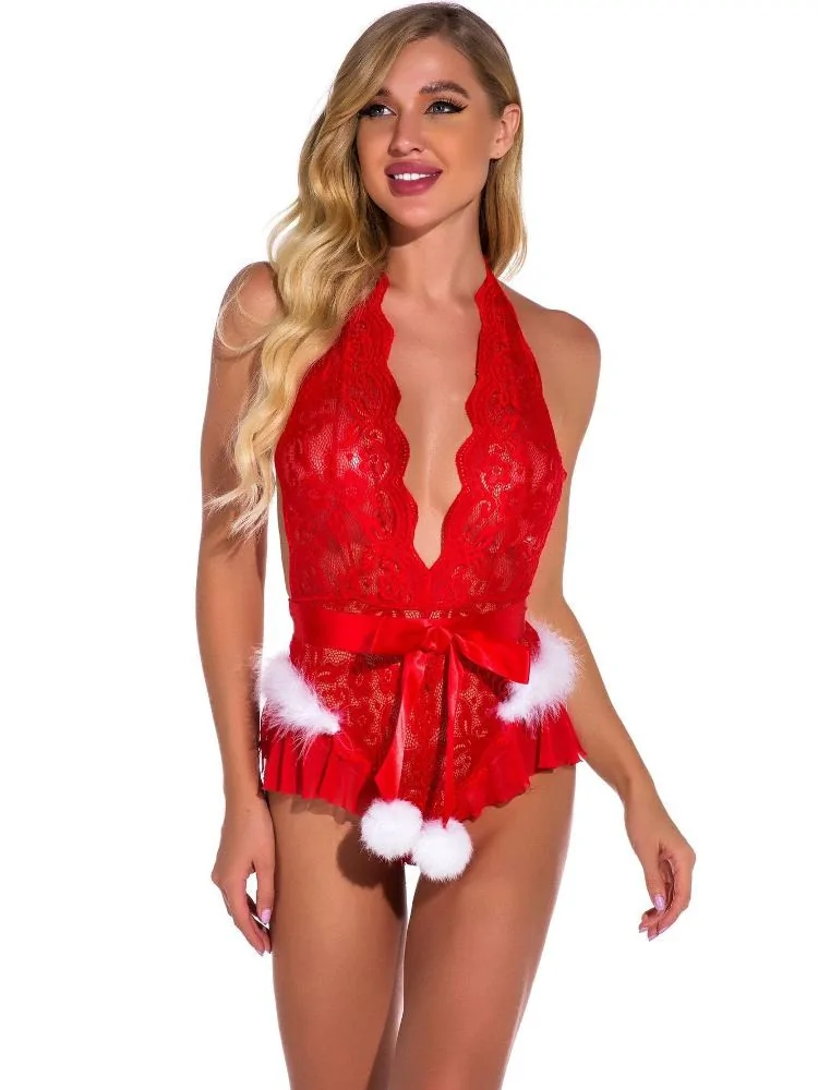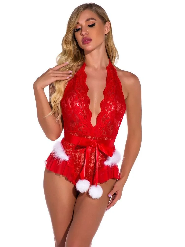BALINA RED LACE CHRISTMAS BODYSUIT