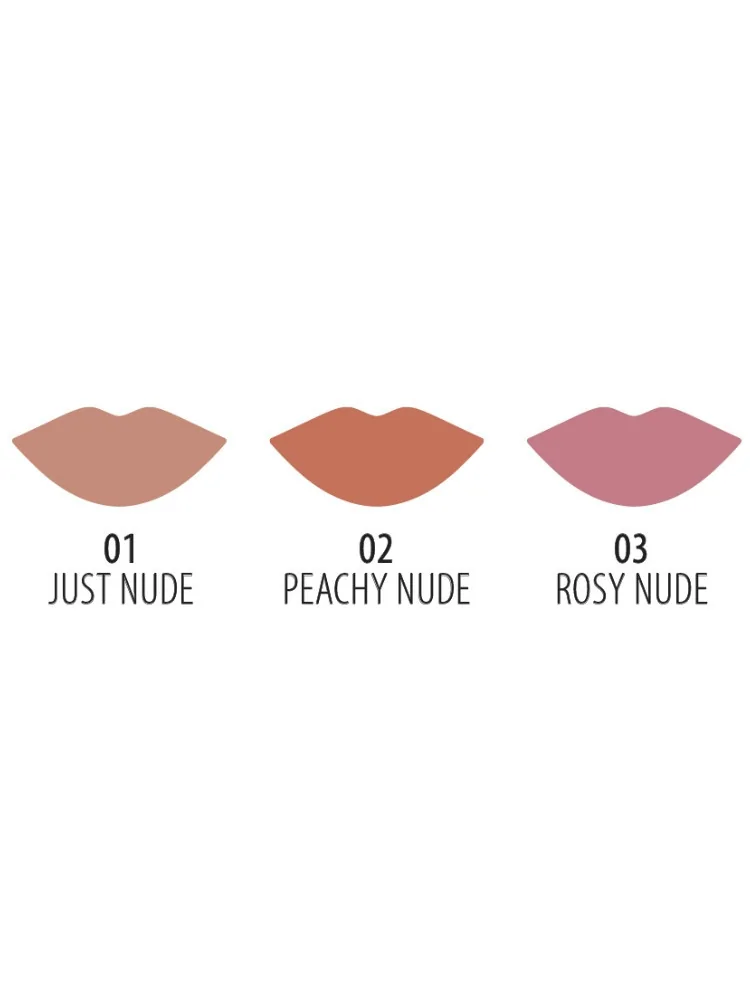 Το νέο, καινοτόμο βελούδινο ματ υγρό κραγιόν (Velvety Matte LipColor) της συλλογής NUDE Look, έχει ανάλαφρη υφή που δεν στεγνώνει, δημιουργώντας εξαιρετικά ματ φινίρισμα με πλήρη χρωματική κάλυψη στα χείλη σας! Κρεμώδης σύνθεση, εμπλουτισμένη με έλαια jojoba και αβοκάντο, ώστε να απλώνεται εύκολα κρατώντας τα χείλη σας απαλά και ενυδατωμένα όλη την ημέρα! Σε συσκευασία 5,5ml. Διατίθεται σε 3 αποχρώσεις: 01 (Just Nude), 02 (Peachy Nude), 03 (Rosy Nude) Δερματολογικά ελεγμένο, paraben free, gluten free, cruelty free