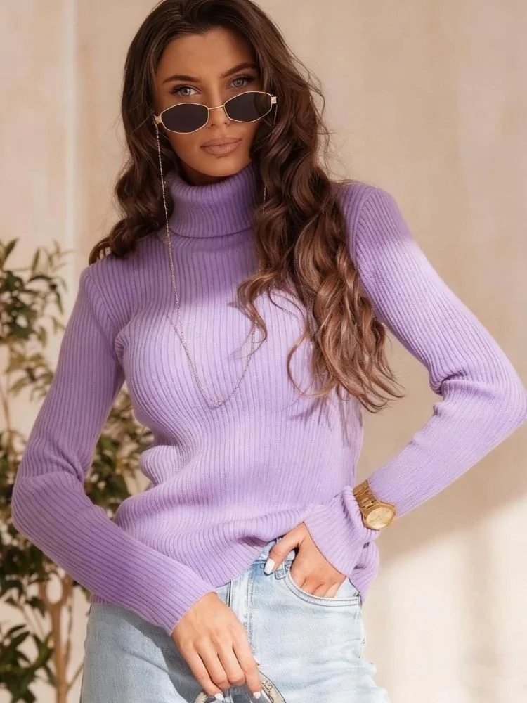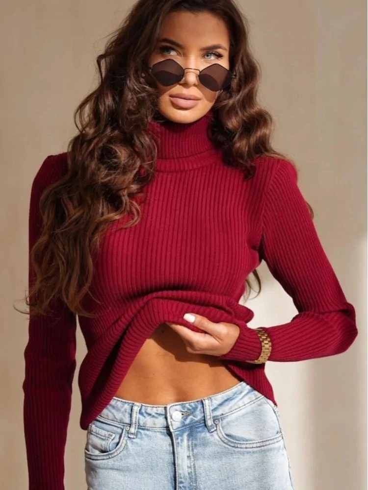 KNITTED RIP TURTLENECK BLOUSE - MYWAY