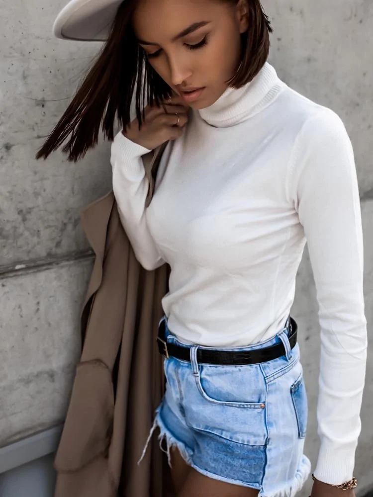 Λευκή πλεκτή μπλούζα ζιβάγκο Κανονική γραμμή One size