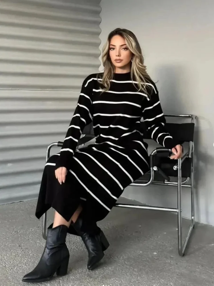KNITTED LONG DRESS - STRIPE