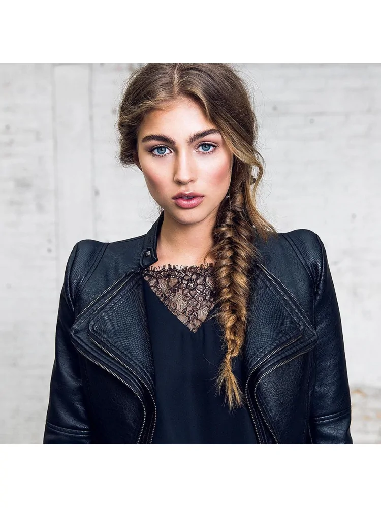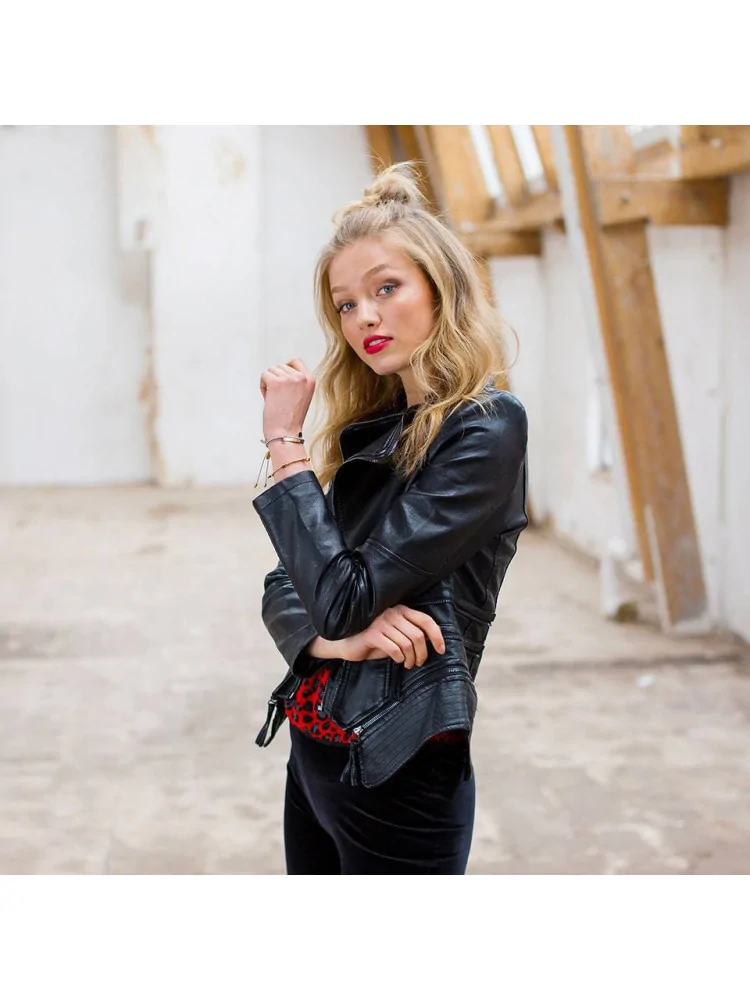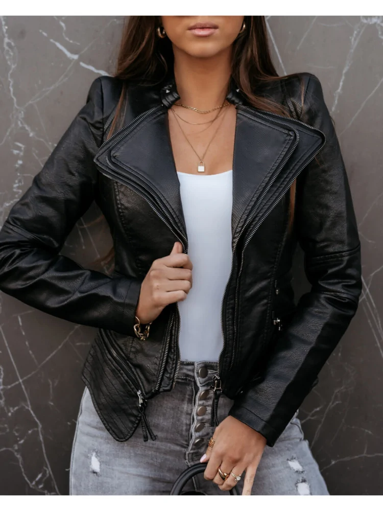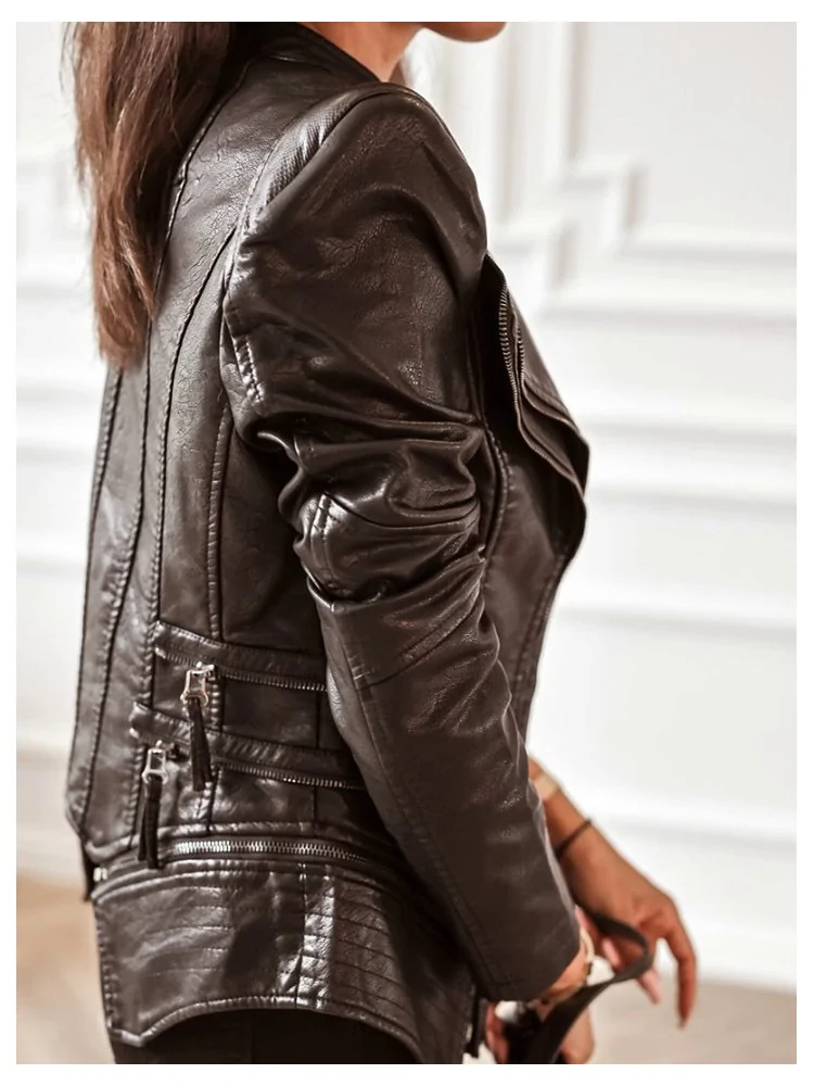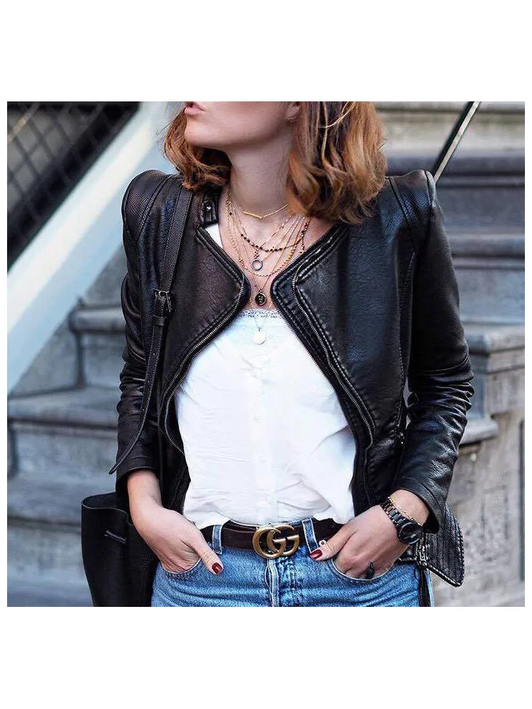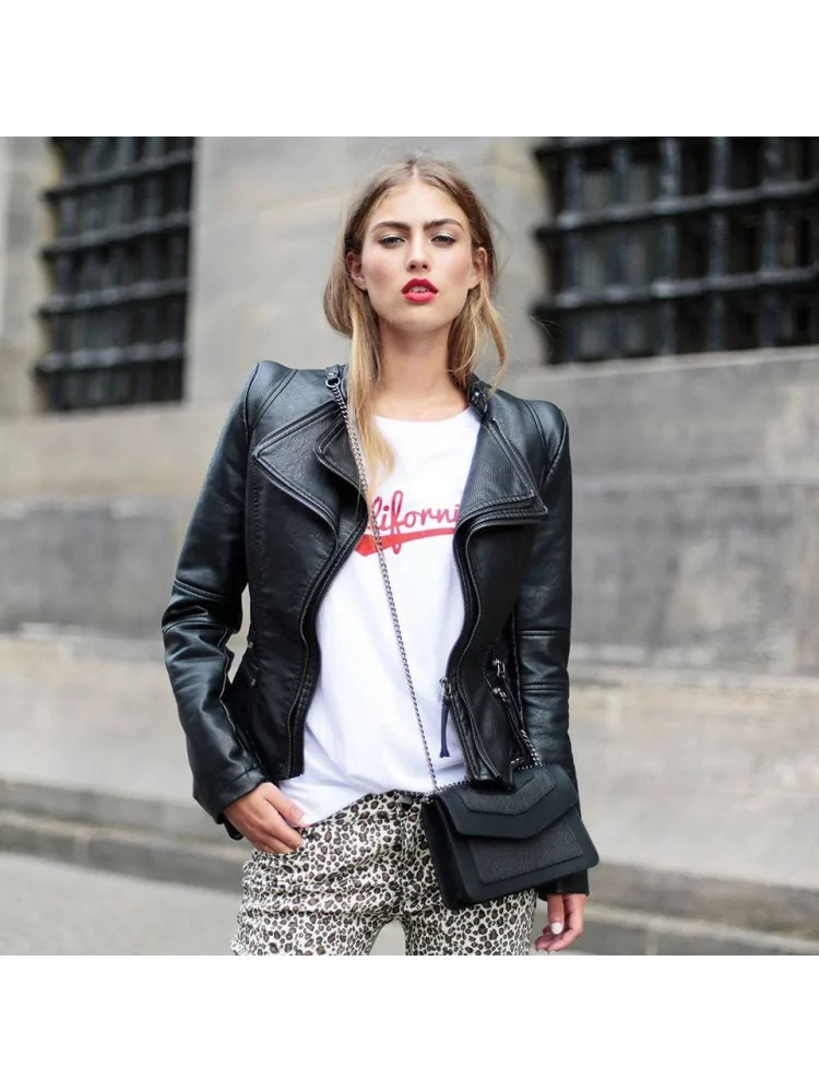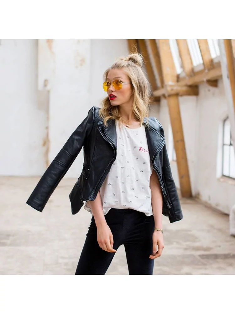 Μαύρο jacket από οικολογικό δέρμα Στενή γραμμή