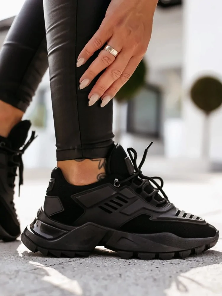 μαύρο sneaker με κορδόνια και τρακτερωτό πάτο