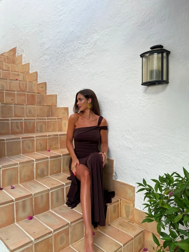 The Alva maxi dress with floral print is the perfect choice for weddings, baptisms, and special occasions! With a beautiful brown color and romantic flowers, this dress highlights your femininity and grace. Its maxi silhouette offers elegance and comfort, while the floral pattern adds a touch of freshness and style. Pair it with nude sandals and minimal jewelry for a stunning appearance at every festive moment. Alva is here to make you stand out with finesse and femininity!